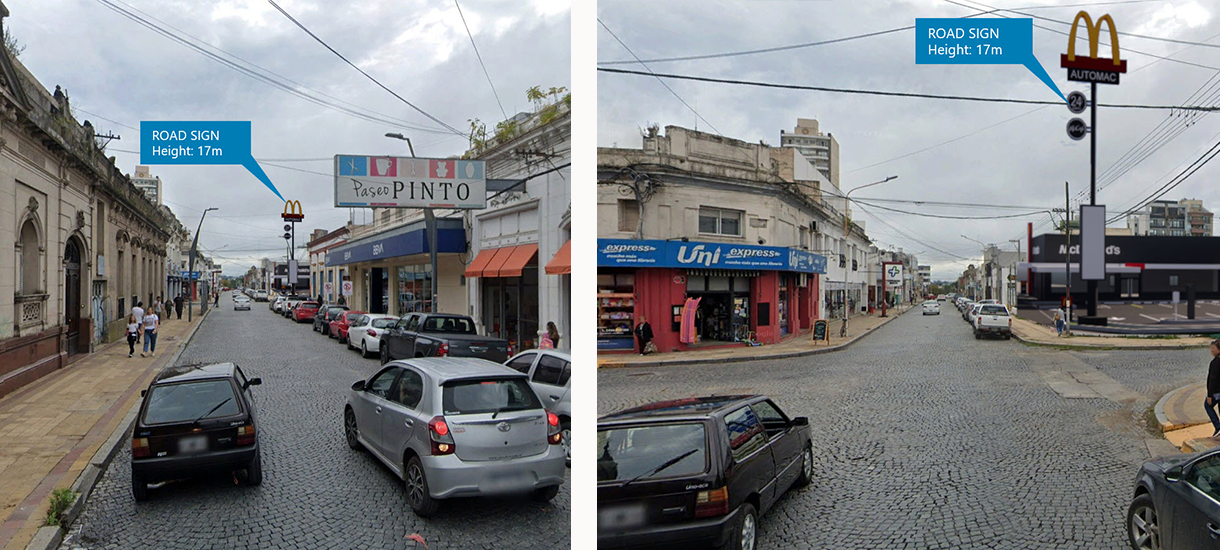 In the past, sign surveys required site visits, cranes, and Photoshop edits to show how a sign might look. It was a slow and expensive process, and the results were not always precise: the sign's sizes, proportions, and perspectives were sometimes unrealistic.